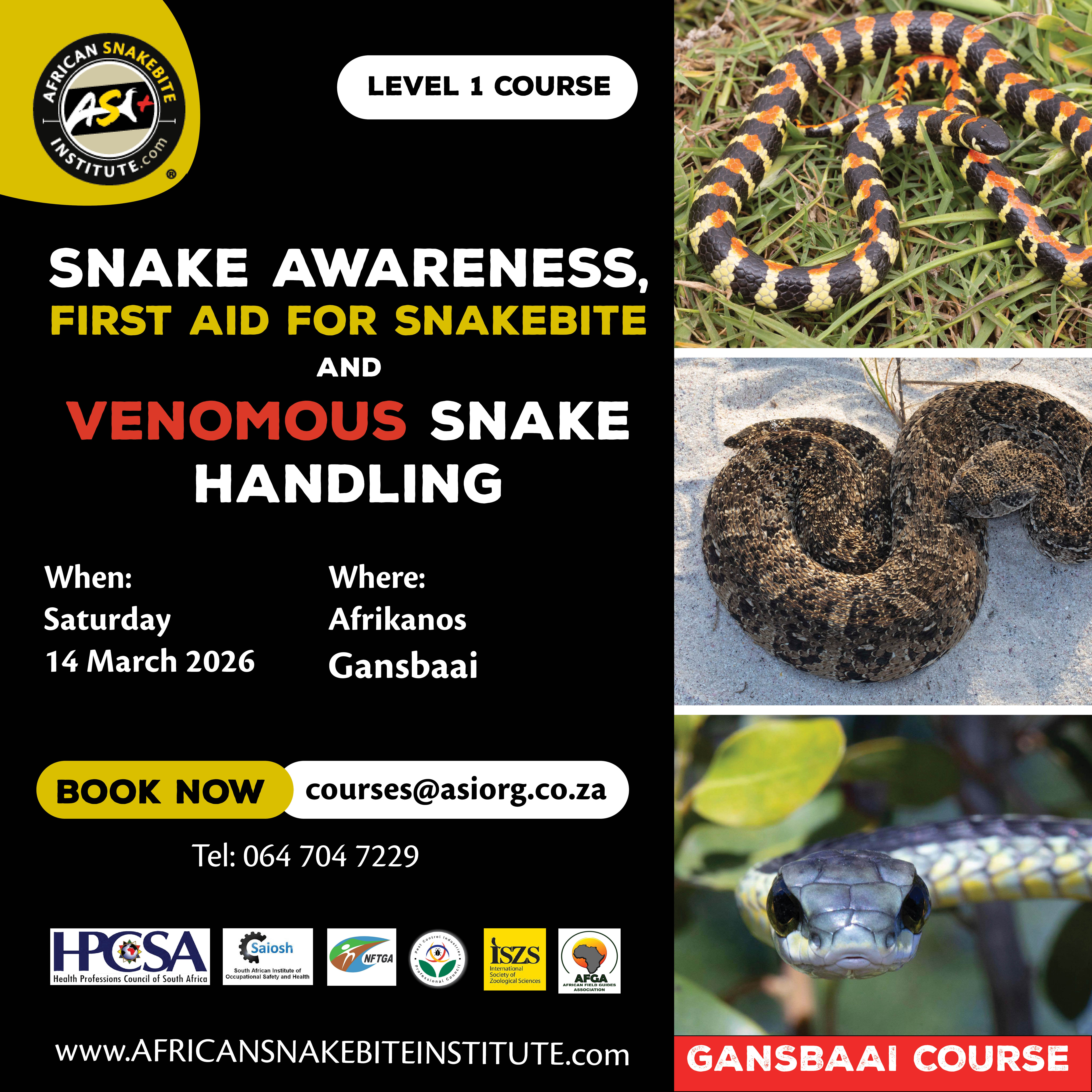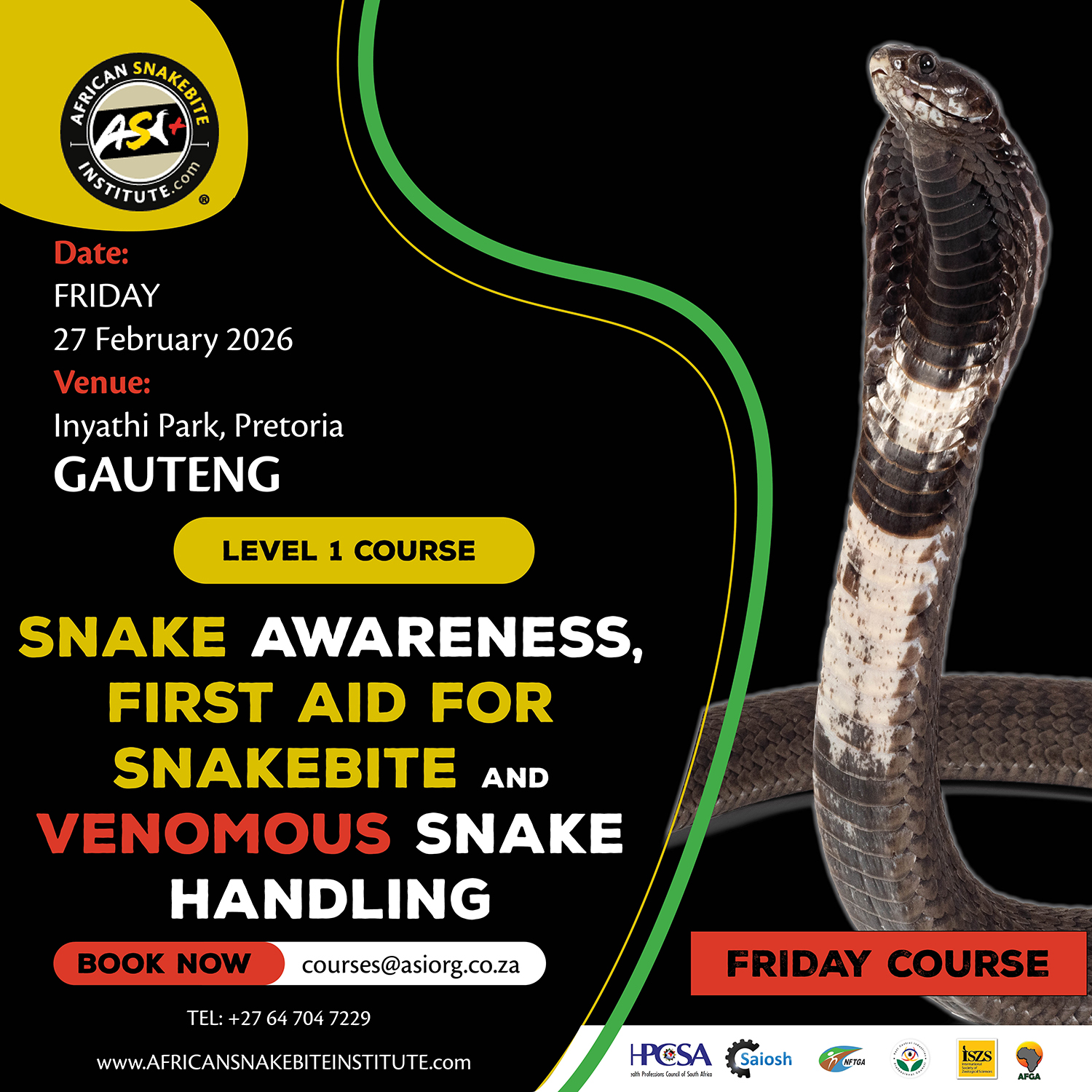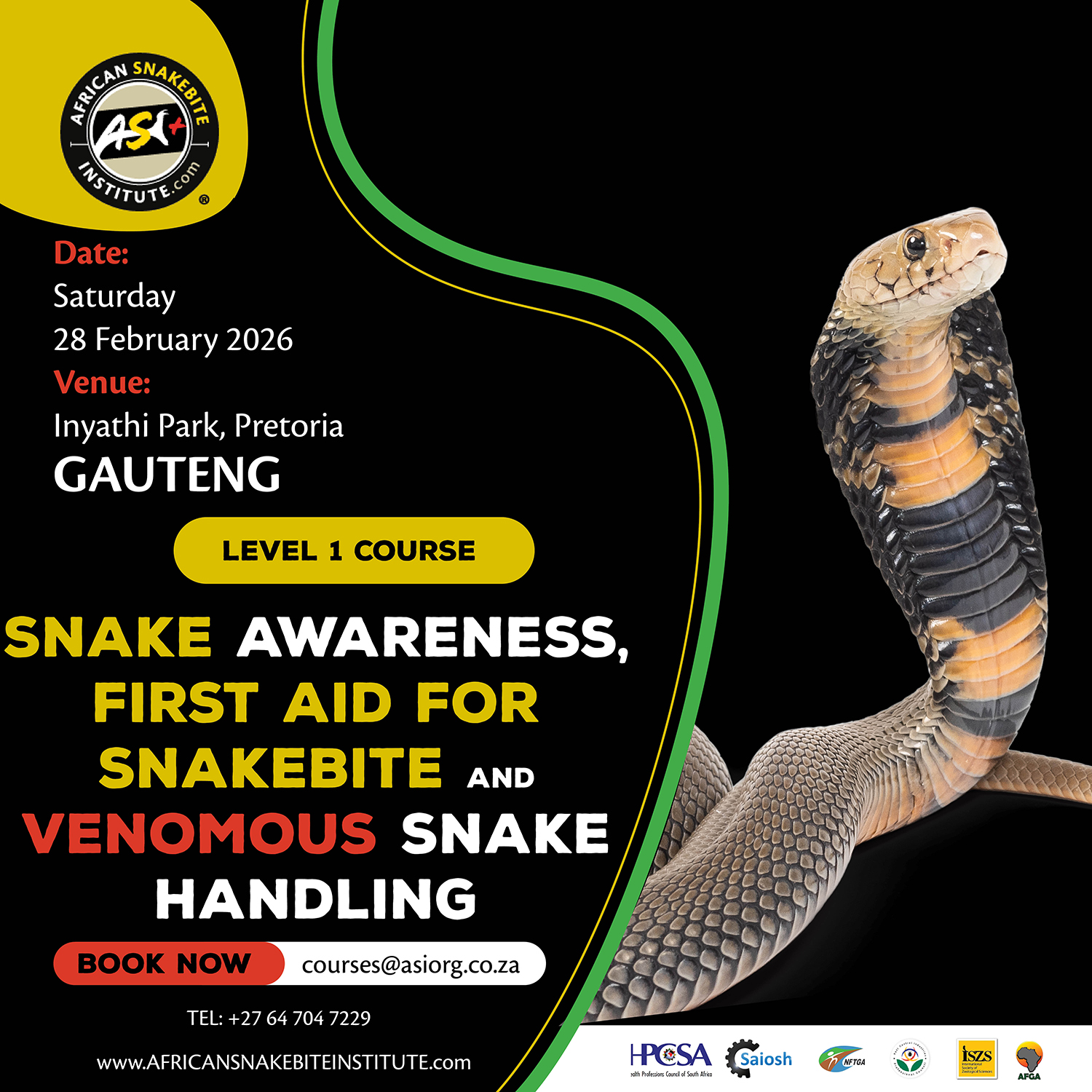The African Snakebite Institute (ASI) offers a variety of courses including Snake Awareness, Scorpion Awareness and Venomous Snake Handling. ASI is accredited by the International Society of Zoological Sciences (ISZS) and is a Travel Doctor-approved service provider. The courses are also accredited by the Health Professions Council of South Africa (HPCSA). ASI is the largest provider of quality snake handling and safety equipment in Africa!