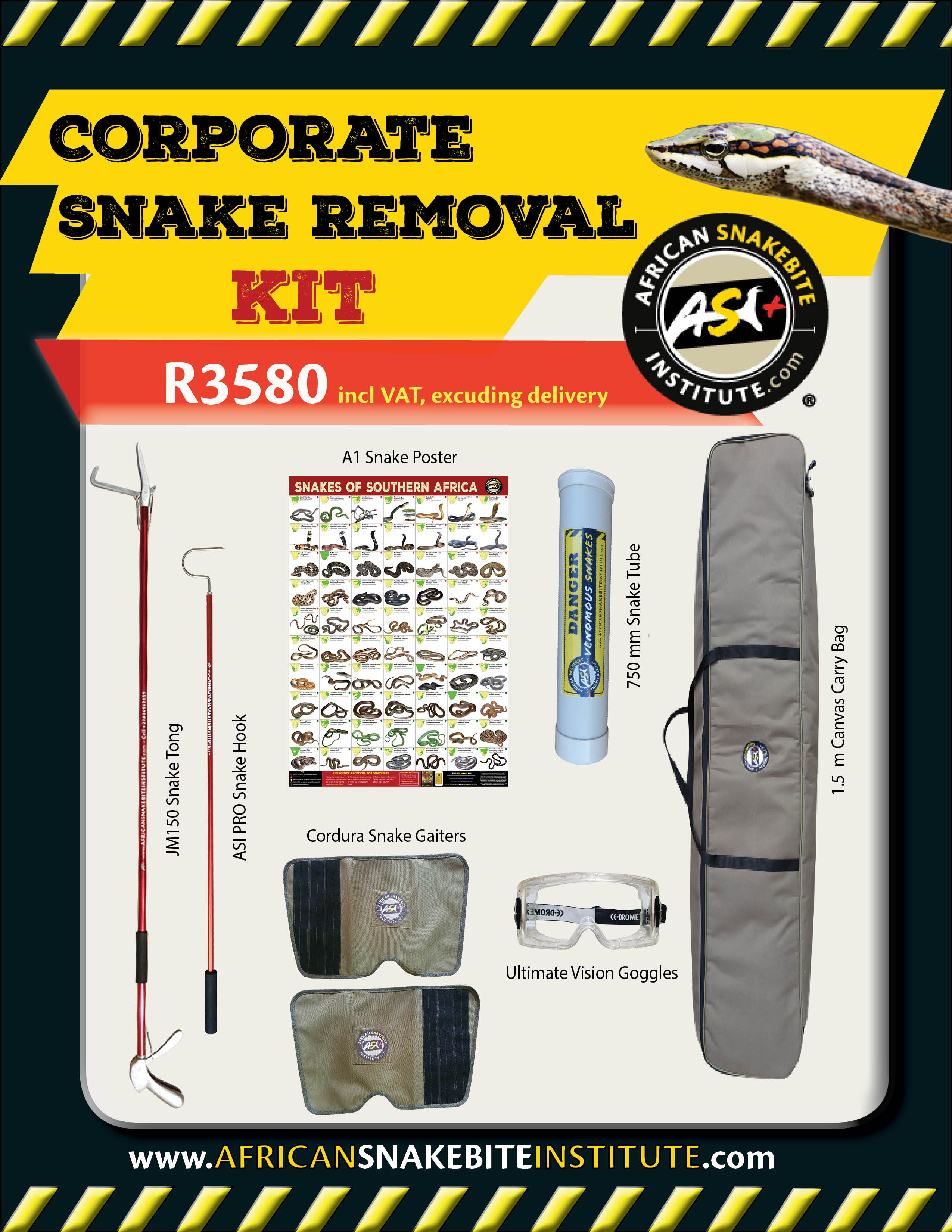 - Correct Snake equipment: Using the correct snake handling equipment can make a huge difference. Explore the largest range of quality snake handling equipment and safety equipment in Africa on our website. https://www.africansnakebiteinstitute.com/shop/