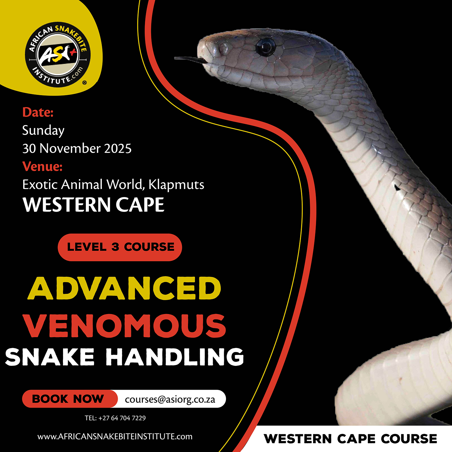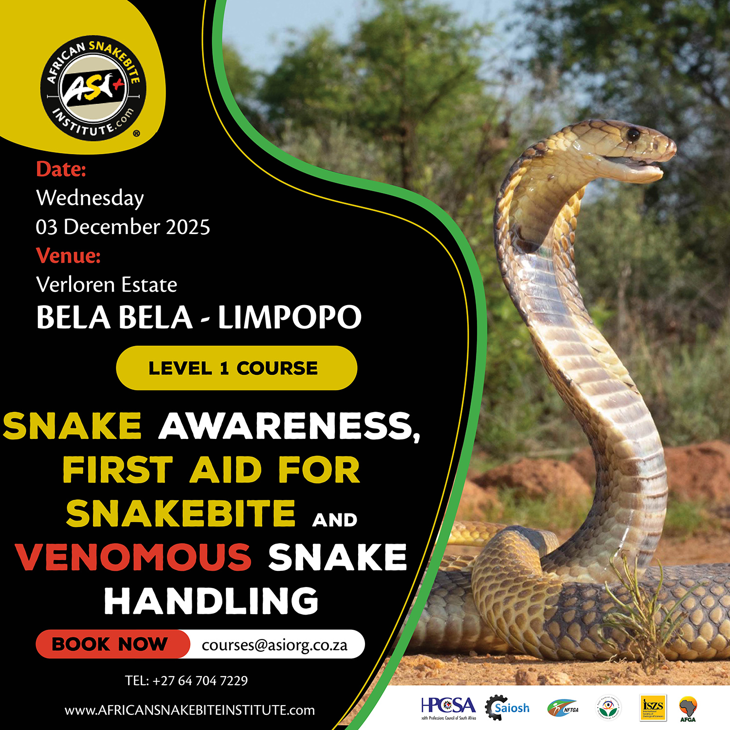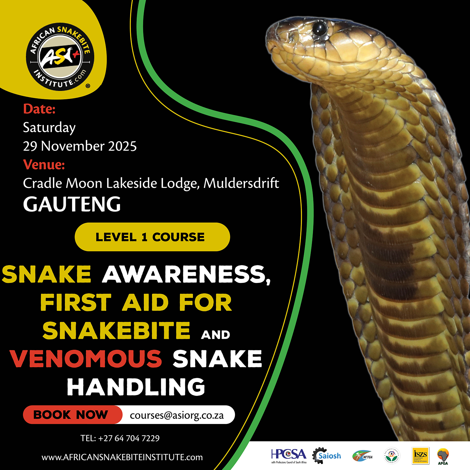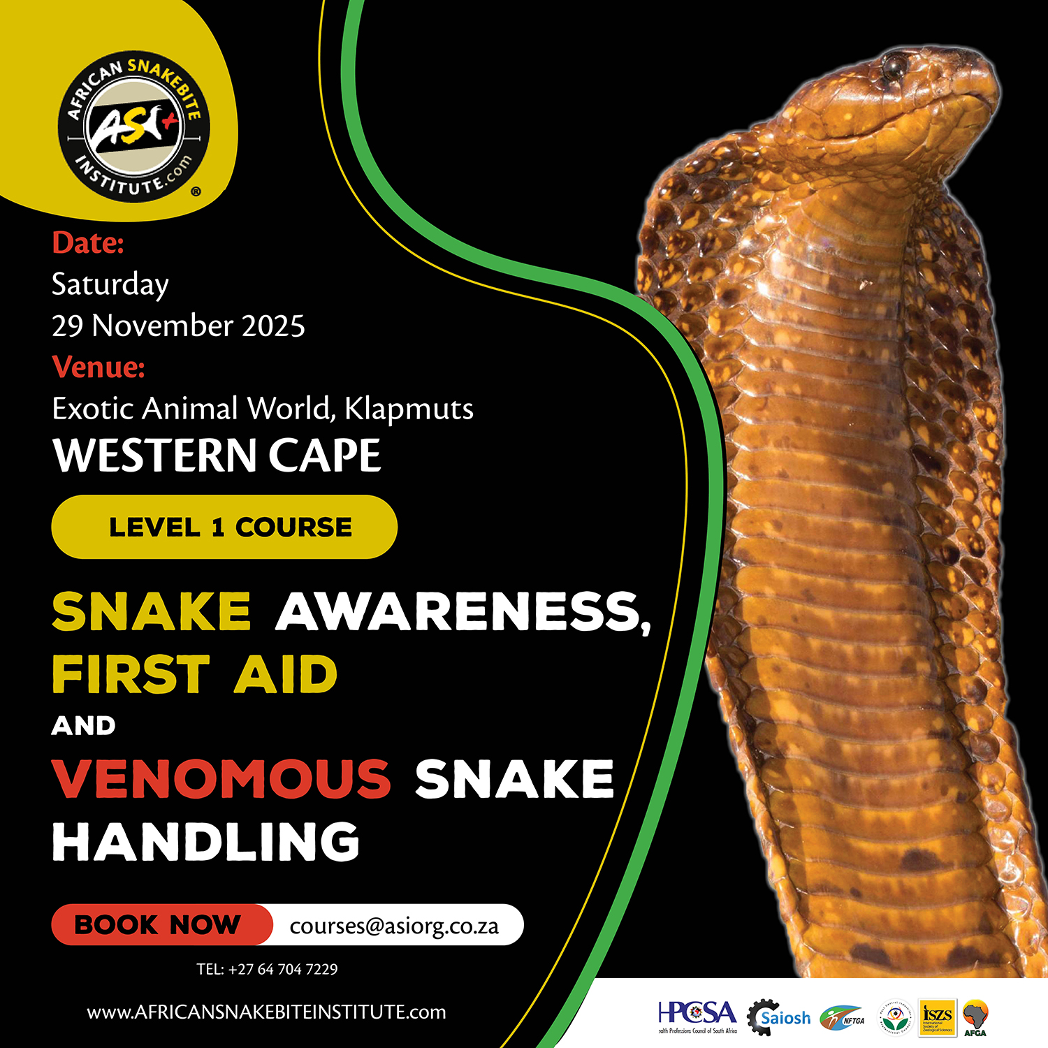 Johan Marais is the author of various books on reptiles including the best-seller - A Complete Guide to Snakes of Southern Africa. He is a popular public speaker and CEO of the African Snakebite Institute. The African Snakebite Institute (ASI) offers a variety of courses including Snake Awareness, Scorpion Awareness and Venomous Snake Handling. ASI is accredited by the International Society of Zoological Sciences (ISZS) and is a Travel Doctor-approved service provider. The courses are also accredited by the Health Professions Council of South Africa (HPCSA). ASI is the largest provider of quality snake handling and safety equipment in Africa!